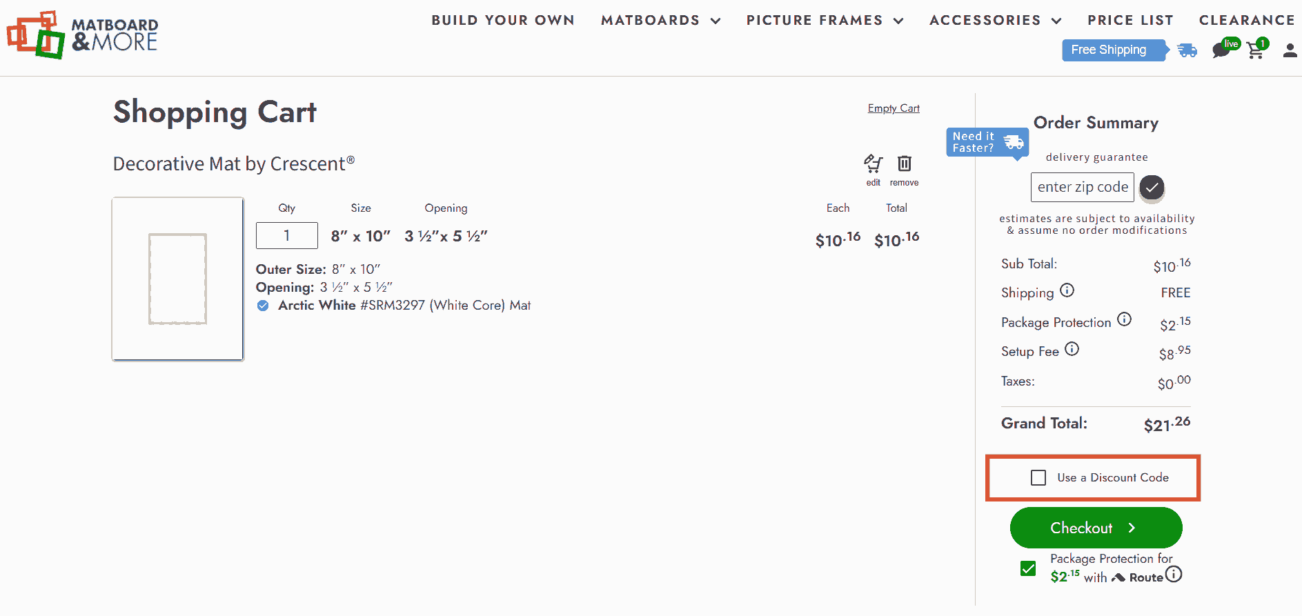 You can see in the image below where to apply the Matboard and More discount code. Enter the coupon code in this box and click apply to get an instant discount.