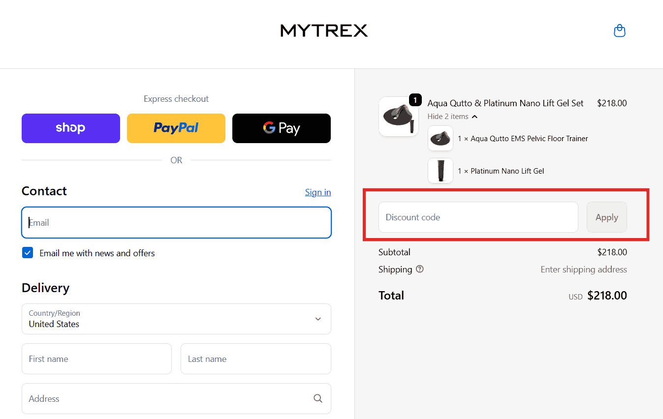 You can see in the image below where to apply the Mytrex discount code. Enter the coupon code in this box and click apply to get an instant discount.