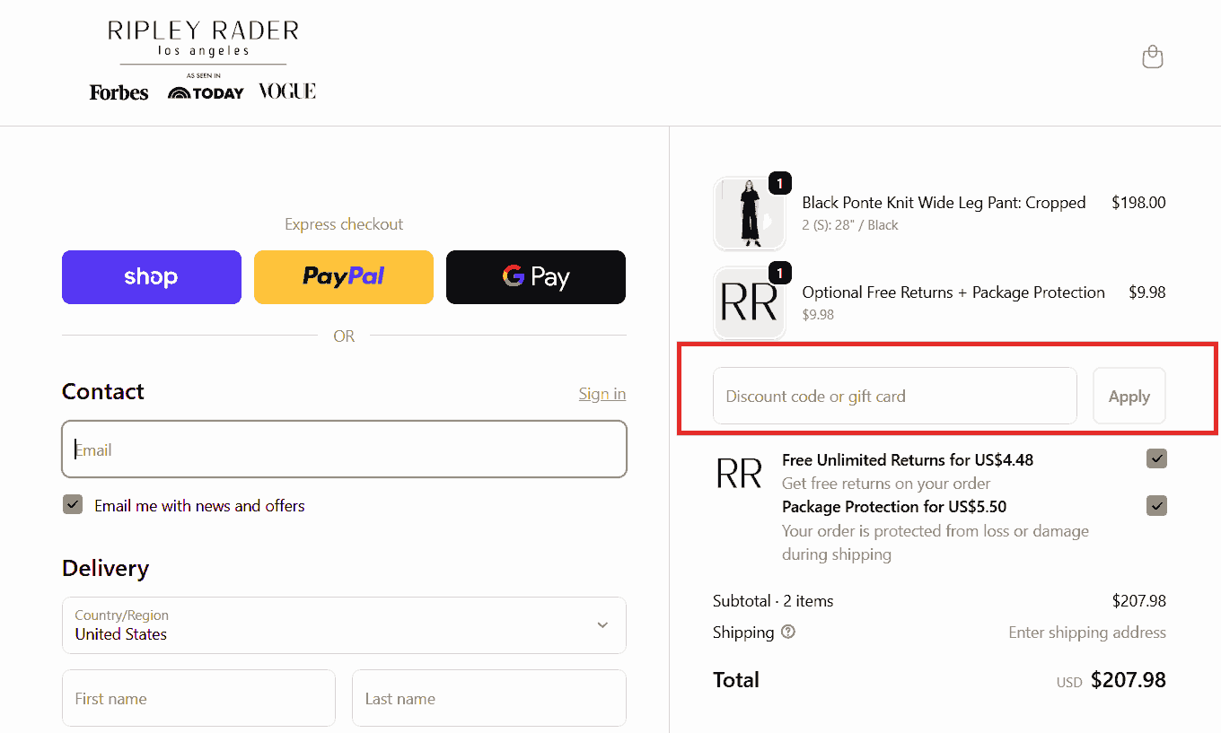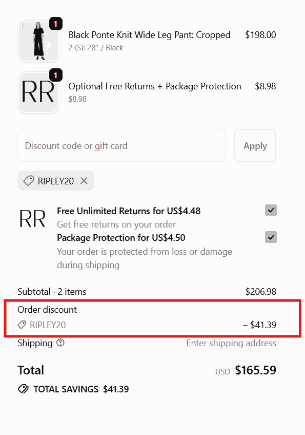 You can see in the image below where to apply the Ripley Rader discount code. Enter the coupon code in this box and click apply to get an instant discount.