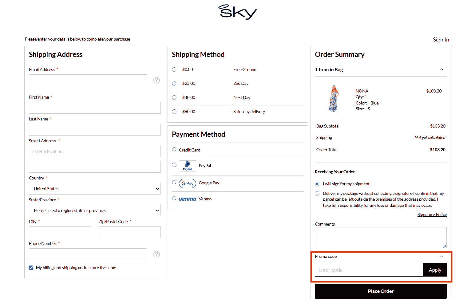 You can see in the image below where to apply the Shopsky discount code. Enter the coupon code in this box and click apply to get an instant discount.
