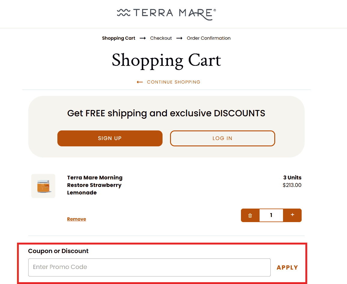 You can see in the image below where to apply the Terra Mare discount code. Enter the coupon code in this box and click apply to get an instant discount.