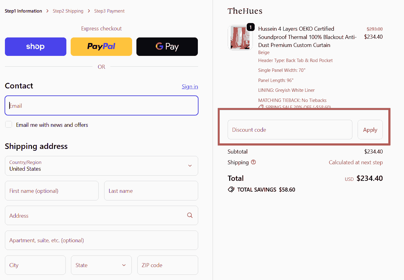 You can see in the image below where to apply the Thehues discount code. Enter the coupon code in this box and click apply to get an instant discount.
