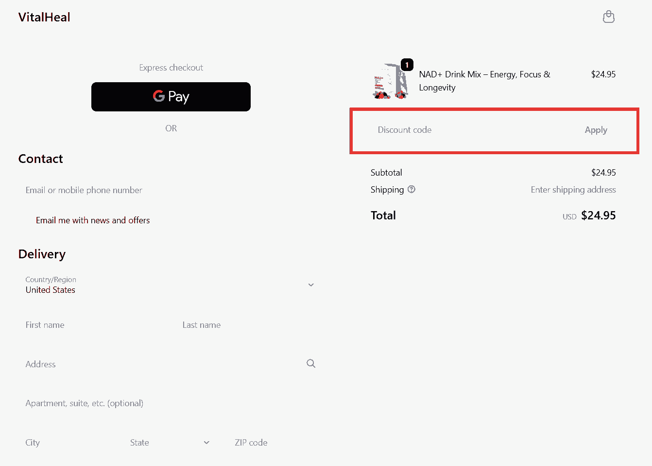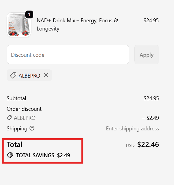 You can see in the image below where to apply the Vitalheal discount code. Enter the coupon code in this box and click apply to get an instant discount.