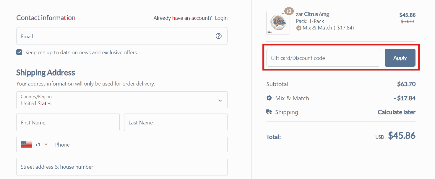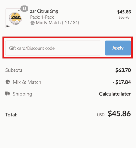 You can see in the image below where to apply the Zar Pouch discount code. Enter the coupon code in this box and click apply to get an instant discount.